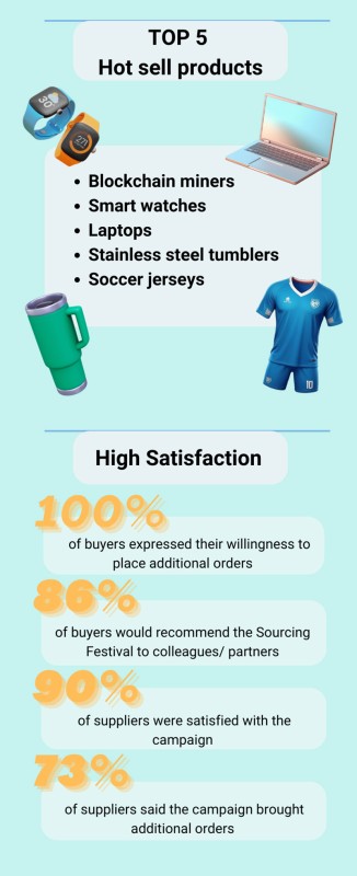 From 8,July to 9 August, the 33-day 2024 Global Sources Sourcing Festival has successfully concluded, showcasing a remarkable Gross Merchandise Value of US$1,459,788 and receiving 14,663post-QC RFIs from global buyers, which has greatly benefited our valued suppliers.